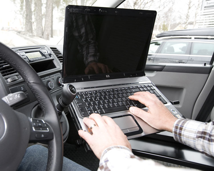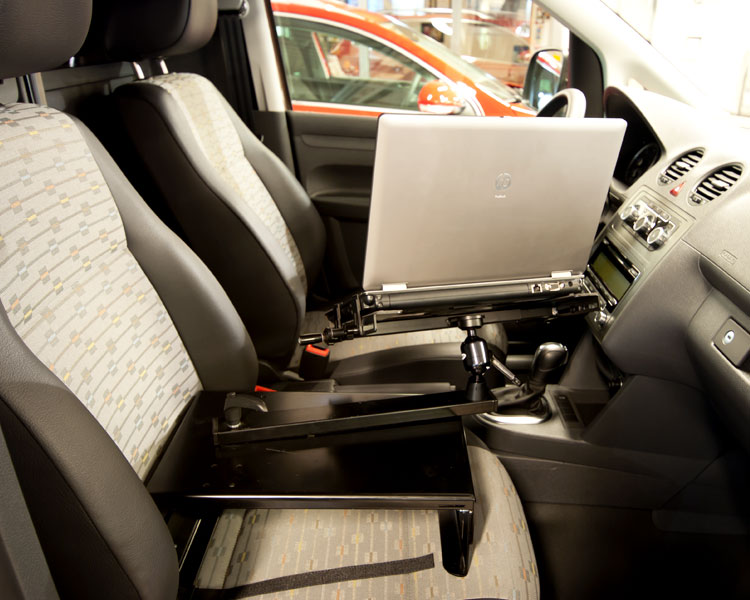 Zirkona Seatholder passt in alle Fahrzeuge und ermöglicht eine optimale Sitz- und Arbeitshaltung. Der Laptoparm ist verschiebbar und die Computerplatte hat einen einstellbaren Neigungswinkel.