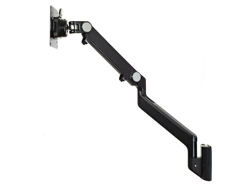 The Humanscale M2 Wall Mount angled, black is the perfect match between function and design. A masterpiece of todays monitor arms