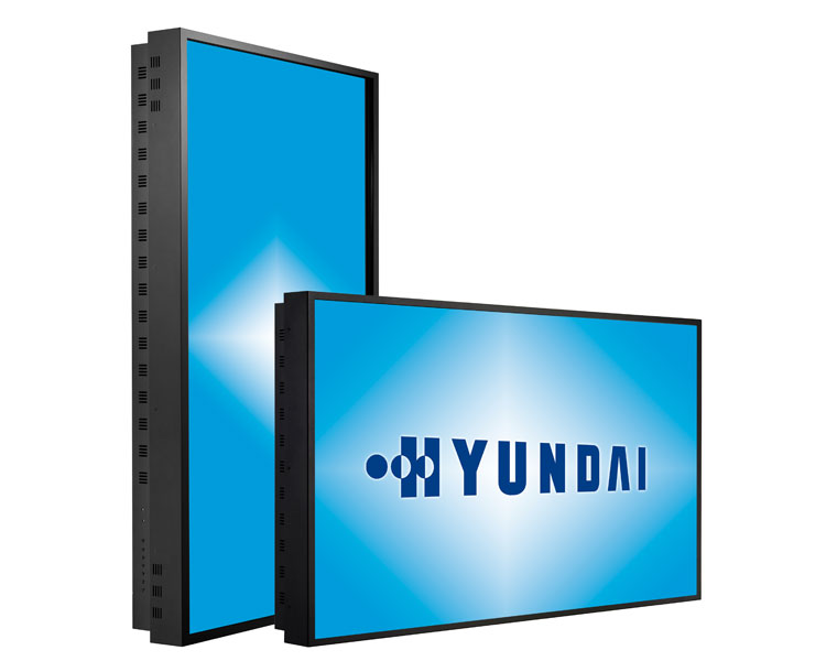 By using special “Out-Of-Home” LCD panels HYUNDAI IT’s indoor public displays ensure the presentation of digital signage contents in a pin sharp, high bright and brilliant picture quality. For installations in environments with brightest lightning conditions – even bright sunlight – HYUNDAI provides special displays which are based on the optical bonding technology. This leads to the advantage that glare and refl ection on the screens are reduced to a minimum while brightness is increased at the same time.