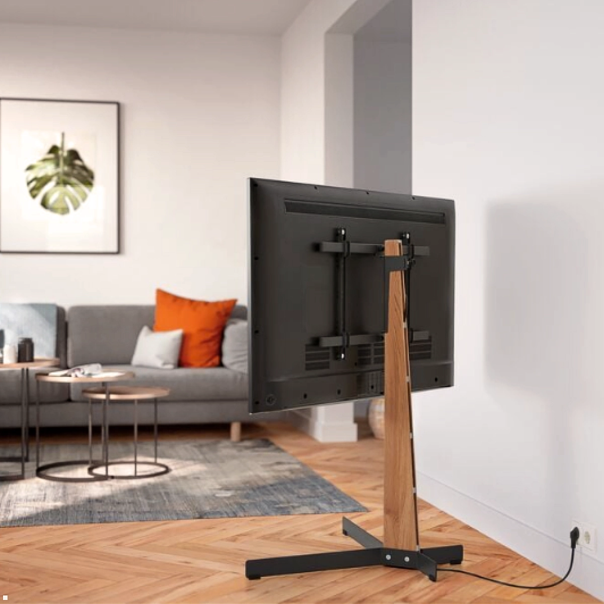 A TV stand offers several advantages compared to a wall-mounted solution. Especially in rental apartments or multi-purpose spaces, a TV floor stand is the perfect choice – it requires no drilling and can be easily relocated. A mobile TV stand with wheels is ideal for offices, classrooms, or presentations, offering full mobility. Models with swivel and height-adjustable mounts ensure perfect viewing angles from every position.