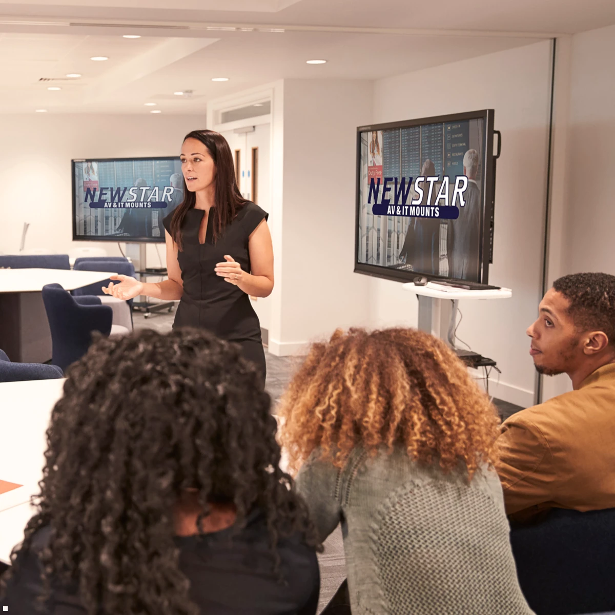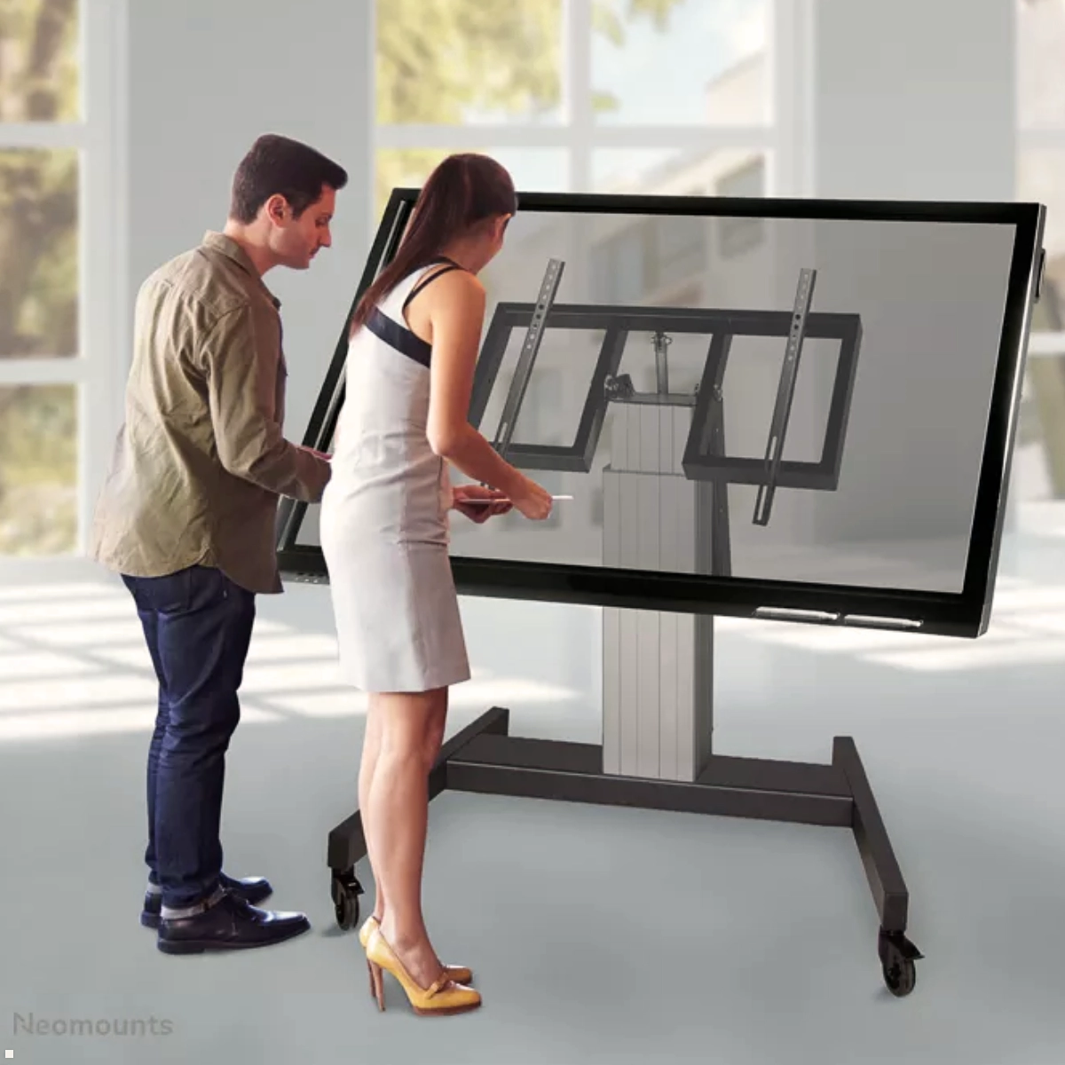 The Neomounts PLASMA-M2500TSILVER is a professional-grade electric height-adjustable TV stand and touch table, engineered for large displays and interactive applications. Perfect for education, corporate presentations, and digital signage, this stand offers motorized height and tilt control (0°–90°), allowing seamless transitions between upright and tabletop modes.