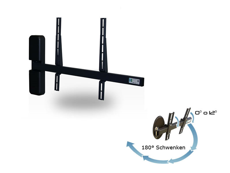 The Flag series is a range of motorized and manual supports, unique of its kind. The products of the Flag series are perfect to be applied on columns or angle walls and allow the TV screening in more rooms of the house. Innovative and reliable, the motorized models with movement by means of remote control, equipped with inner friction guarantee complete safety in the rooms. The products of the Flag range are adjustable till 180° on the right or on the left and reclining from 0° to 12° according to the necessity.