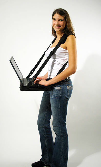 The MonLines Universal Notebook Bracket Mobile design is based on the bookshop principle. It is the perfect tool for a mobile usage of laptops, for example for an interview.