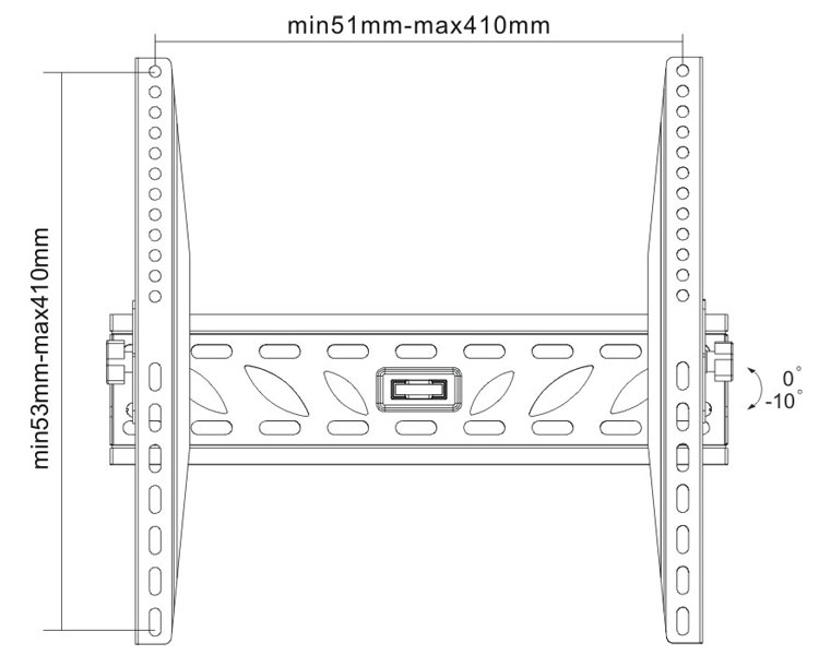 This wall mount is easily to install by using the VESA hole pattern at the rear side of your TV. This wall mount can be used when the maximum distance between the holes (left to right) is 20 cm. The upper and lower holes allow a maximum distance of 20 cm.