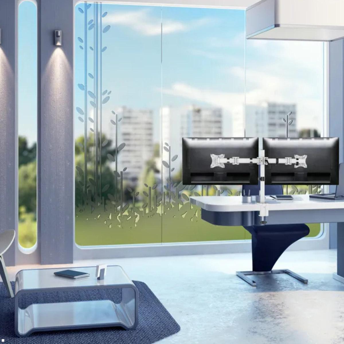 The tilt, swivel and rotate function of the flexible display mount makes it possible to adjust different viewing angles. This can prevent neck and back pain in the long term. The twin monitor mount in white is perfectly suited, for example, for offices, receptions in hotels, for places with a high volume of people, where monitors are needed for the presentation of content, as well as in the private sector in the home office.