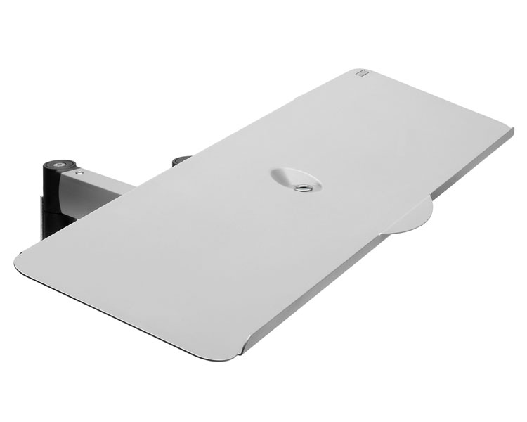You can use the DSS keyboard holder to stand your computer keyboard and mouse on and push them aside when they are not needed. In conjunction with a monitor support arm and TSS wall rail, it can be attached to the wall to save space. This enables you to use the keyboard while standing and gives you the flexibility of adjusting it at any time to suit your work situation. With a load-bearing capacity of up to 5 kg and measuring 640 x 172 mm, the support platform is suitable for large-size keyboards. The DSS keyboard holder can be attached to DSS and TSS columns. Comes complete with drop guard and 2 cable clips.