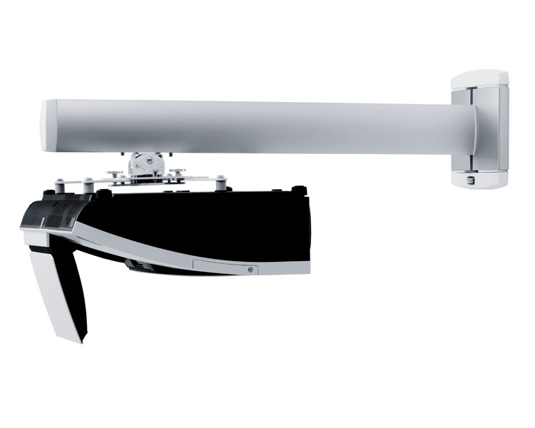 A wall bracket with generous adjustment facilities to obtain the best possible image quality at all positions. The projector can be suspendedat any location along the complete pillar for depth adjustment. Furthermore, the wall plate can be adjusted both horizontally andvertically.