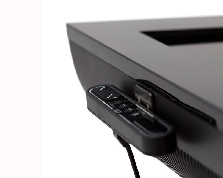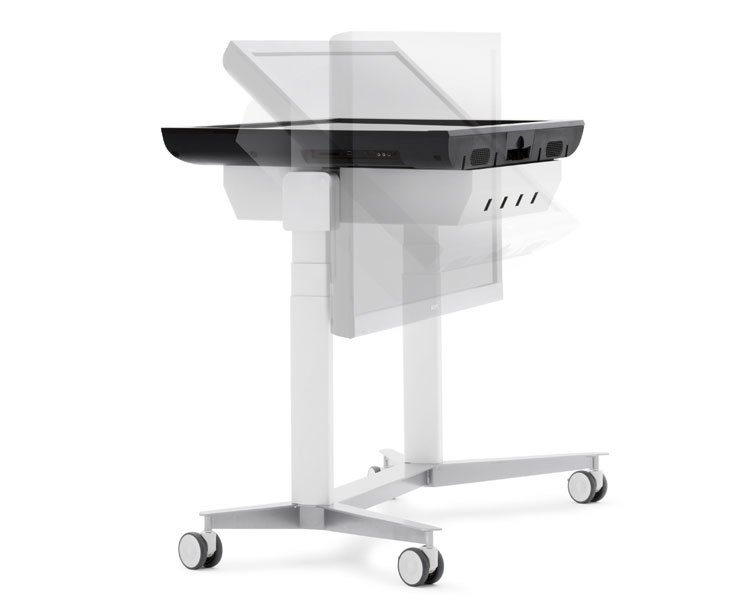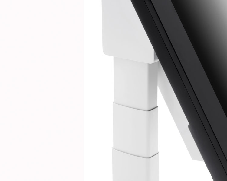 The motor-driven tilt function allows you to switch the screen easily from a horizontal to a vertical position. The tilt function, the adjustable height and easy wheeled transport combine to make this the ideal solution for universities, architects and companies who need to come together to discuss, sketch or draw up guidelines. The SMS Touch Veritable is operated by a wired remote control unit. A computer bracket is available as an accessory.