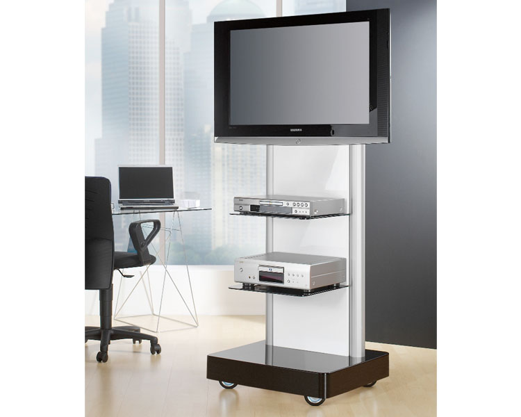 VCM LCD-/Plasma-Standfuß Pro-Stand (black glass) - For professional application. * Assambled delivery on an europallet *