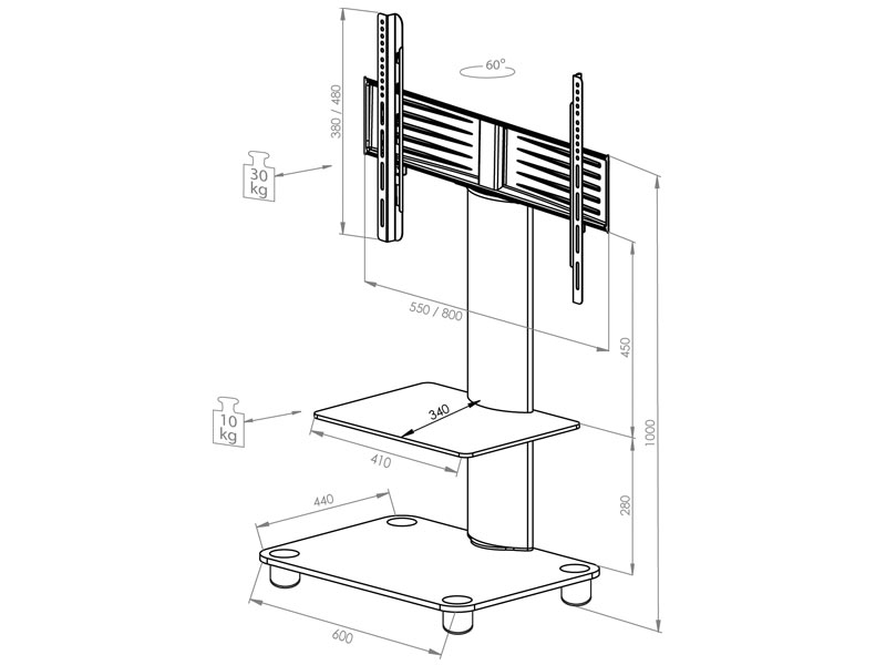 - Suitable for all TV TV devices from 22-37 inches (56-94cm), up to max. 30kg