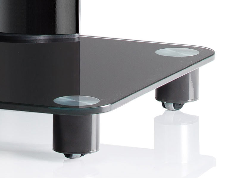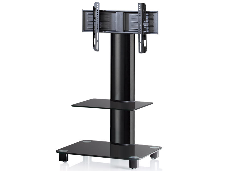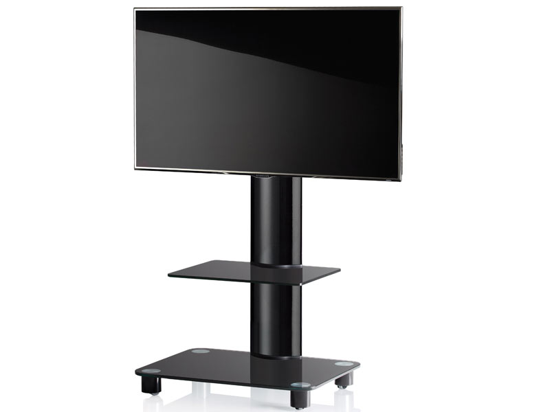 The VCM TV stand Bilano black with black glass shelve including roles is a combination of high-quality Alumium and elegant black glass. The shelves provide ample room for additional devices such as DVD player or games console. The four hole wheels in aluminum feet allow for easy mobility. The clever VCM cable channel at the back makes the cables virtually invisible and makes for a nice order.