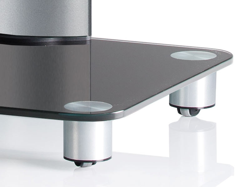 The VCM TV stand Bilano silver Black glass including roles is a combination of high-quality Alumium and elegant black glass. The four hole wheels in aluminum feet allow for easy mobility. The clever VCM cable channel at the back makes the cables virtually invisible and makes for a nice order.