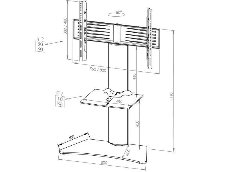 - Suitable for all TV TV devices from 22-37 inches (56-94cm), up to max. 30kg