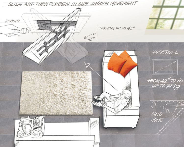 - The Glider offers an innovative super smooth movement mechanism with the Auto Home feature which automatically moves to a preset position when the display is switched on and returns to the home position when the TV is switched off.