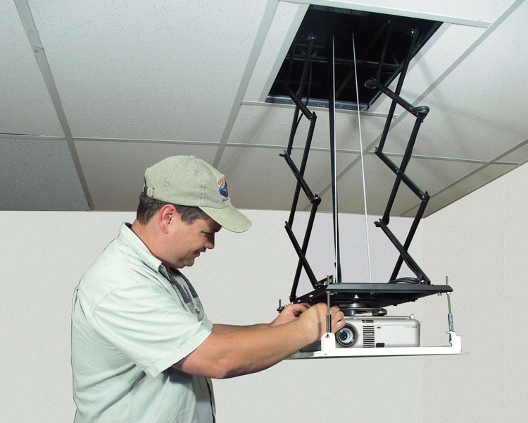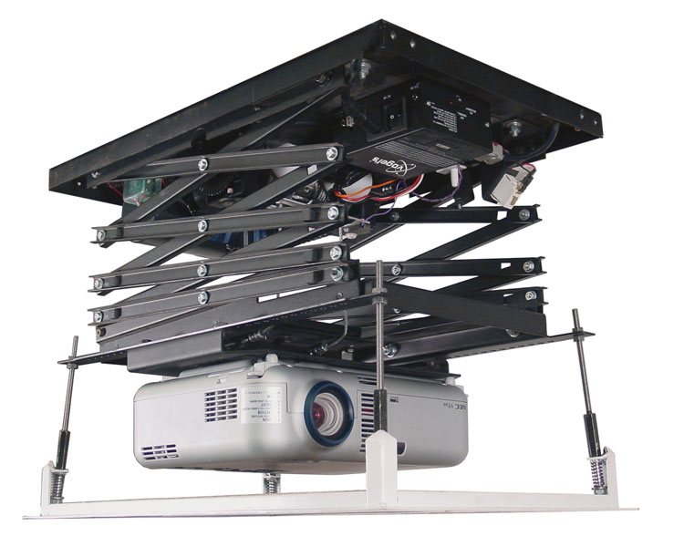 The Vogel's PPL 1515 projector lift system has a unique microprocessor controled operation and height setting. The advantages are quick installation and very accurate height positioning. The built in self diagnostics continiously monitor the lift operation. Vogels PPL 1515 projector lift system has a whisper quiet operation and 3 height positions: home position, show position and service position. Connecting to a automation system as Crestron, AMX or others is easy with the included interface. The maximum drop down distance is 1 mtr. Vogels PPL 1515 projector lift system includes: - universal projector adapter - ceiling finishing kit 40x60 cm - open contact operation/control - interface connector for automation systems as Crestron, AMX, etc. Options: IR remote set, larger ceiling finishing kits