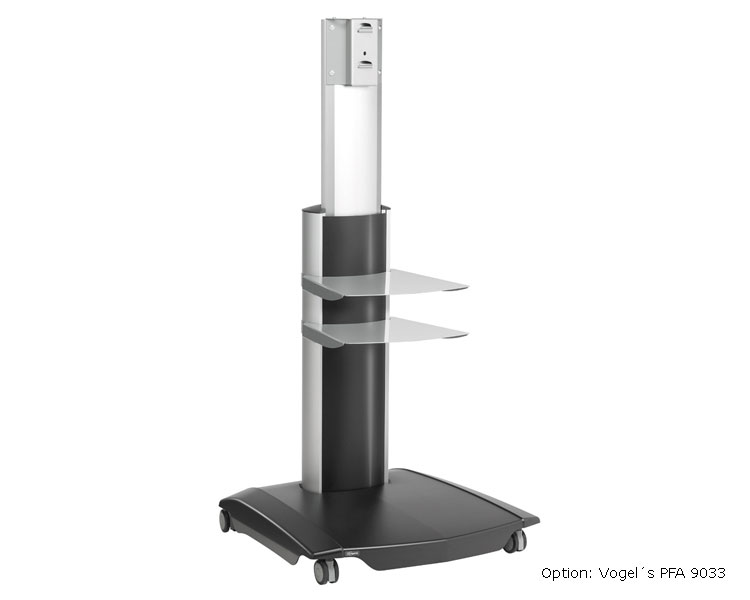 Due to the solid aluminium construction the trolley is very stable. Features as a tiltable platform, height adjustment, cable management and storage, the unique "Brand Your Stand" front cover, make this projector trolley one of a kind. The "Brand Your Stand" front cover can be easily customized by putting a sticker or print on with your logo or company colors. Optional available: Vogels PFA 9033 shelve for a laptop PC or DVD player Vogels PFA 9034 locking cabinet for a laptop PV or DVD player use Vogel's PFA 9037 anti theft kit
