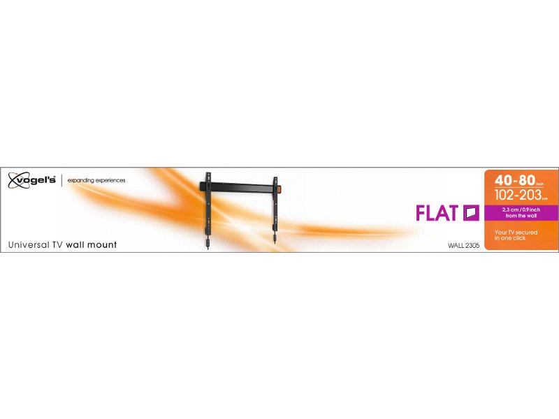 Make your extra large, flat screen TV look flat-tastic with the Vogels WALL 2305 LED/LCD/Plasma wall mount. A great way to mount your TV in the living room, home cinema or bedroom. This wall mount provides sturdy support for your large flat screen TV and leaves just 2.3 cm of space between the TV and wall. This mount is part of the Vogel's FLAT products.